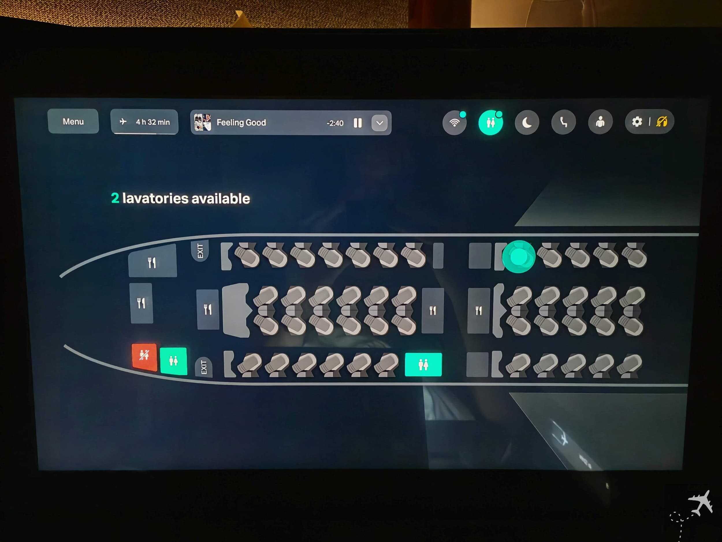So much for the basics. You can find your assigned seat via the labeling on the seat shell, the overhead bin, or by checking the screen. The only thing missing would be a little projector displaying the seat number on the floor, like with Iberia.