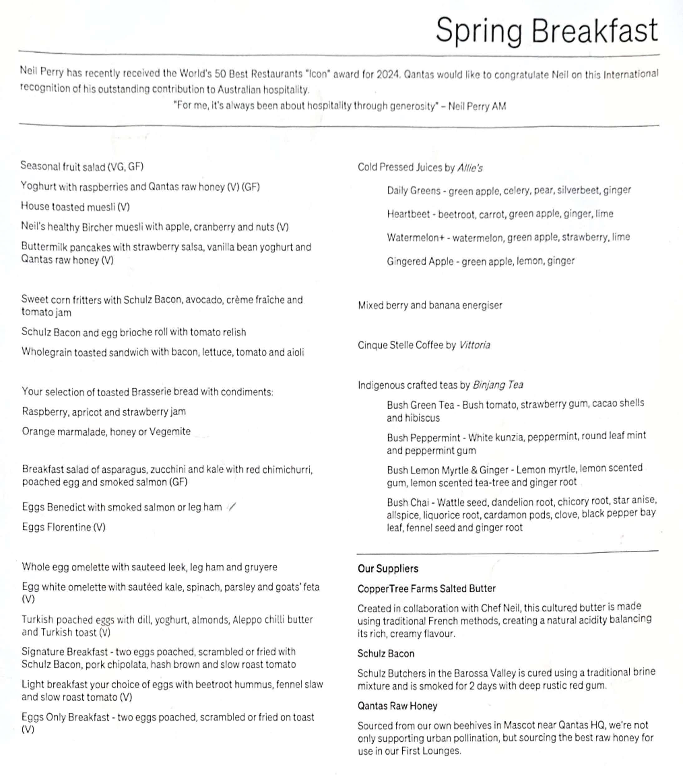 Qantas First Lounge SYD Speisekarte Fruehstueck