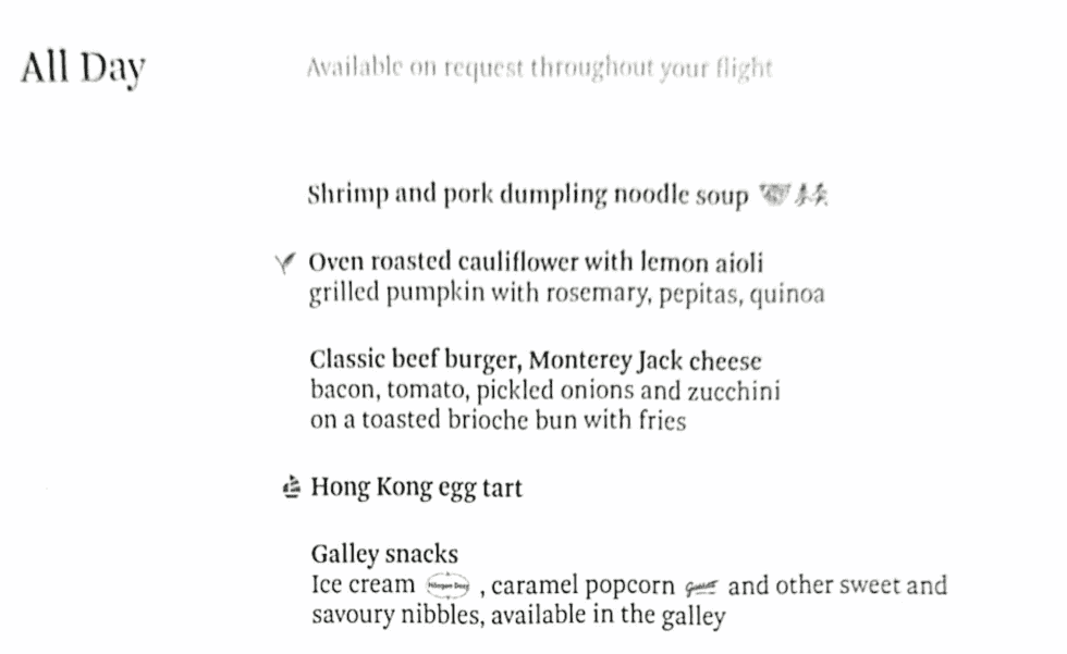 Menu on SYD – HKG
