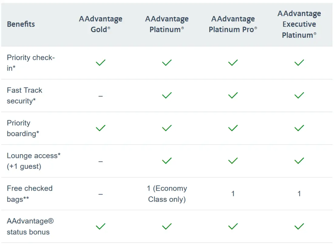 The perks for American Airlines AAdvantage members largely mirror those of British Airways, except that Basic Economy or Saver fares are excluded from baggage benefits.
