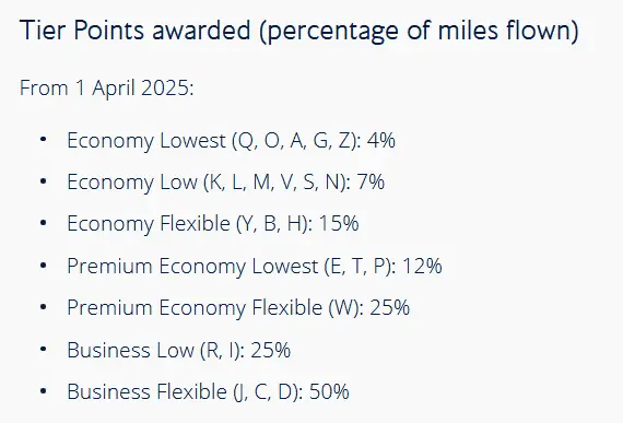 For flights booked before 30 December 2024 for travel from 1 April 2025, that are marketed by British Airways, American Airlines or Iberia, Tier Points will be awarded based on a conversion of the existing method.