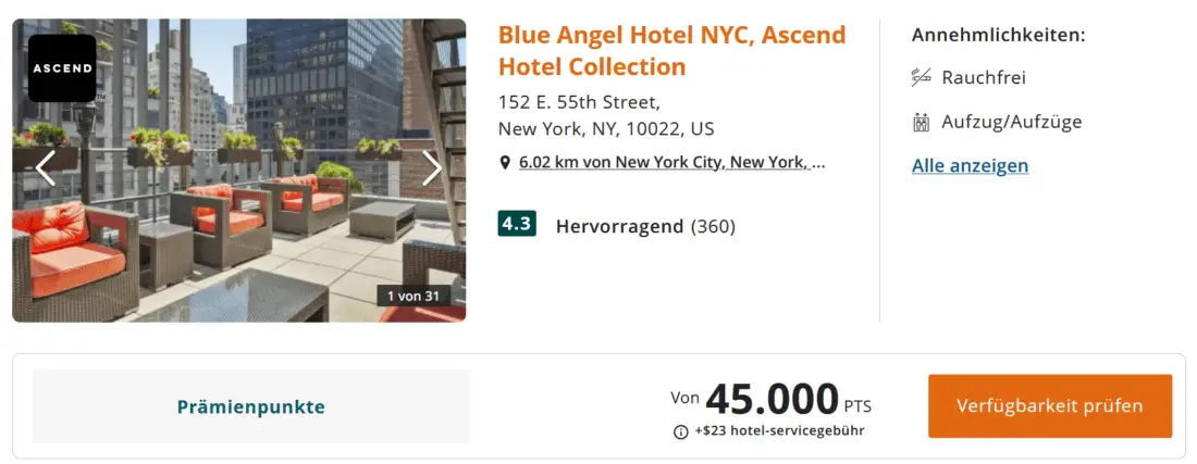 Two exceptions to the 35,000 points rule have already been in place: Hotels in the Asia Pacific Region and Preferred Hotels already had higher maximum prices than most hotels. Now all choice hotels rise above the threshold, as these two hotels in the USA, which are now charging 45,000 points for a reward night: