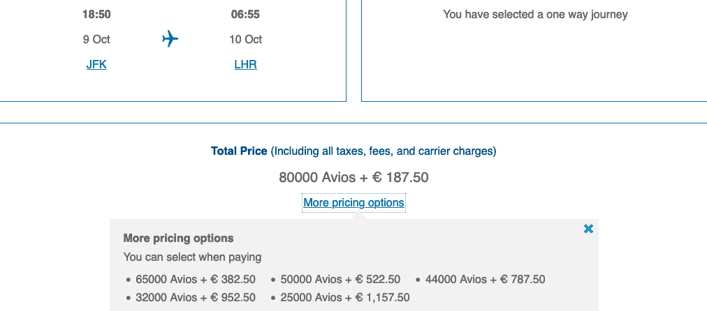 - Off-peak: 4,750 Avios + €23 (unchanged)