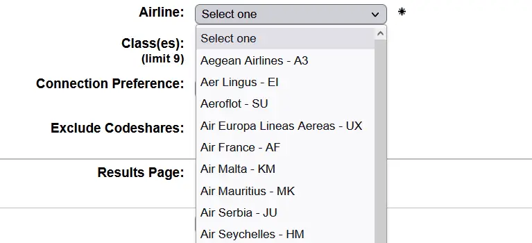 Due to issues in obtaining award and upgrade data for the below airlines, we have removed them from our list of supported airlines in the Award & Upgrade search for the time being. This also means that any active Flight Alerts for those airlines are not currently working.