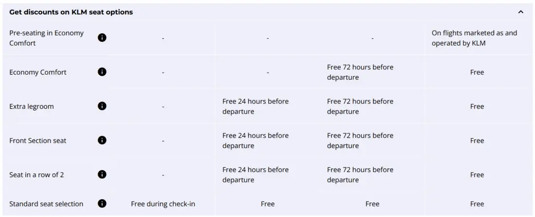 Previously, Flying Blue granted the following status benefits regarding seat selection: