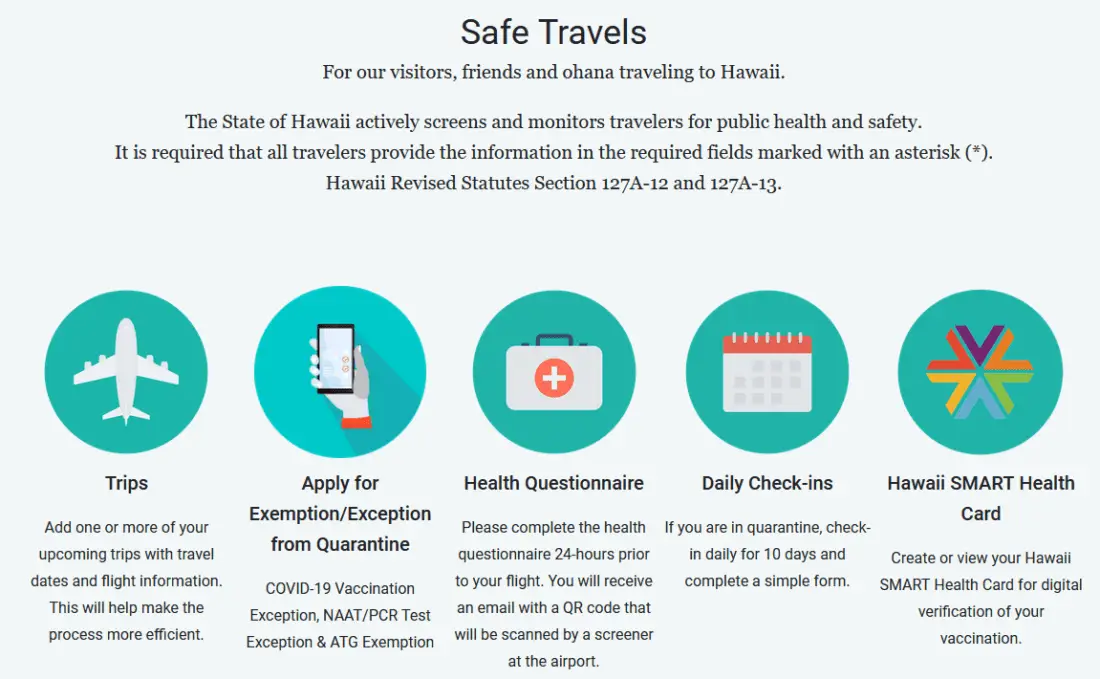 If you want to fly to Hawaii from the (continental) USA, you must first create an account with Safe Travels Hawai’i and enter all kinds of information there. This includes your personal data, details about the trip to Hawaii, health issues, and uploading a quarantine exemption.