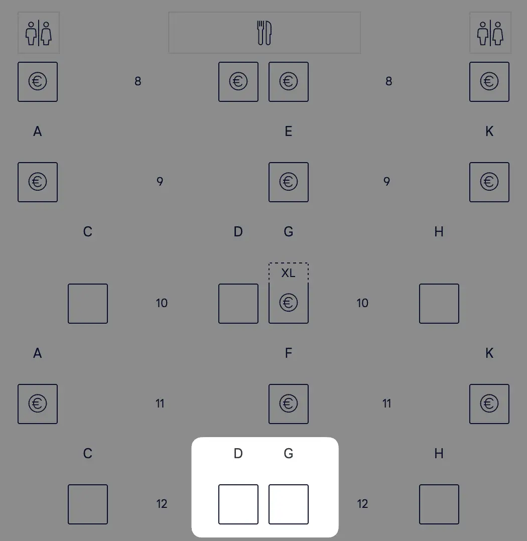 The new fees are particularly inconvenient for passengers travelling together. Sitting next to each other in the same row without an additional charge is only possible in the last rows, 6 or 12, in the middle seats D & G of a cabin section. Notably, 6D and 12D are technically Extra Long Beds.
