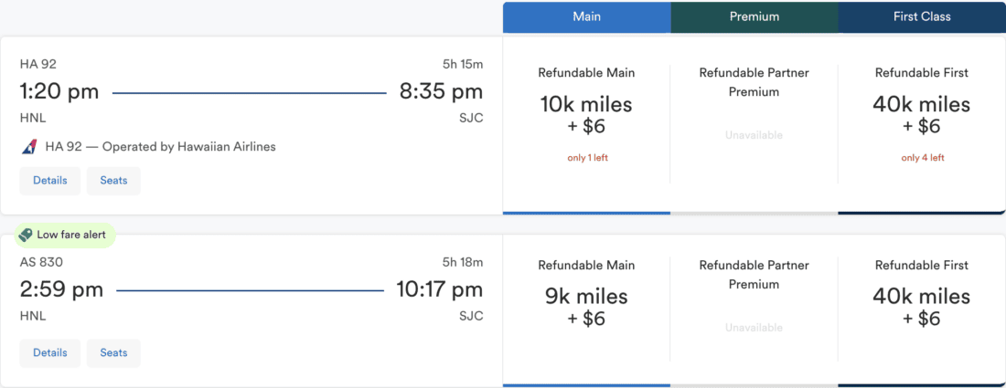 Many people probably think of flying from the American mainland to Hawaii when they think of flying with Hawaiian Airlines. This, however, is not a good use for your Mileage Plan miles. The price of 40,000 miles for spending 5 hours in First Class is not a good use of the miles, and if you fly economy class, flying on Alaska Airlines is cheaper than on Hawaiian.