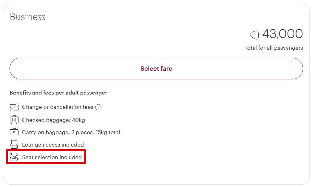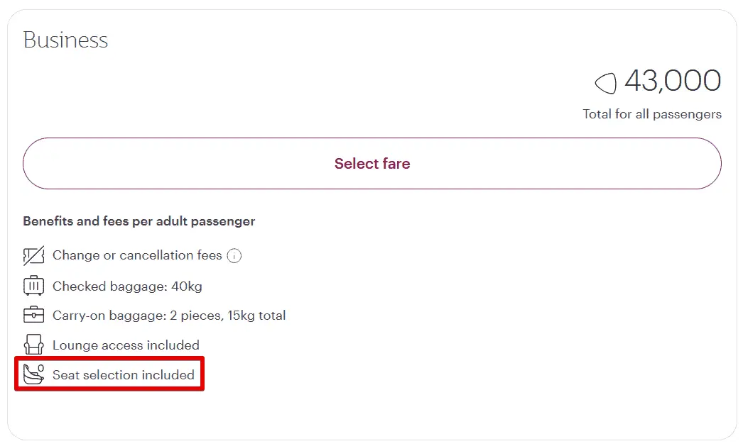 Effective immediately, Qatar Airways has removed free seat selection for Business Class award tickets. Anyone who wants to reserve a seat in advance before check-in will now have to pay around €100 per flight. For frequent flyers with Oneworld Sapphire & Emerald status, seat selection remains free.