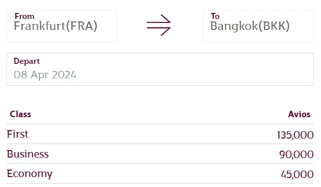 Otherwise, the prices can also be traced in the points calculator on Qatar’s website. Depending on the date entered there, it will either output the higher or lower prices.