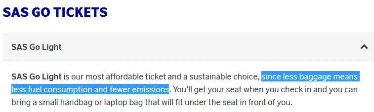 Incidentally, SAS promotes the absence of free baggage on its website as a great environmental protection measure. Less baggage means fewer emissions, after all. Cynics may suggest that Light fares are more about generating additional revenue through baggage fees.