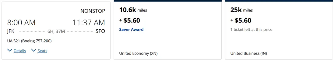 And occasionally there are also business class tickets from New York to San Francisco for 25,000 miles (+ €6):