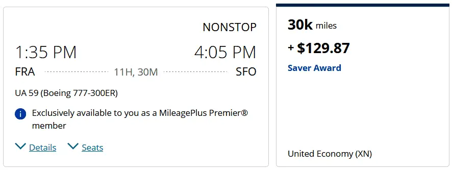 Tickets from Frankfurt to San Francisco can again be booked for 30,000 miles (+ €120) on some days: