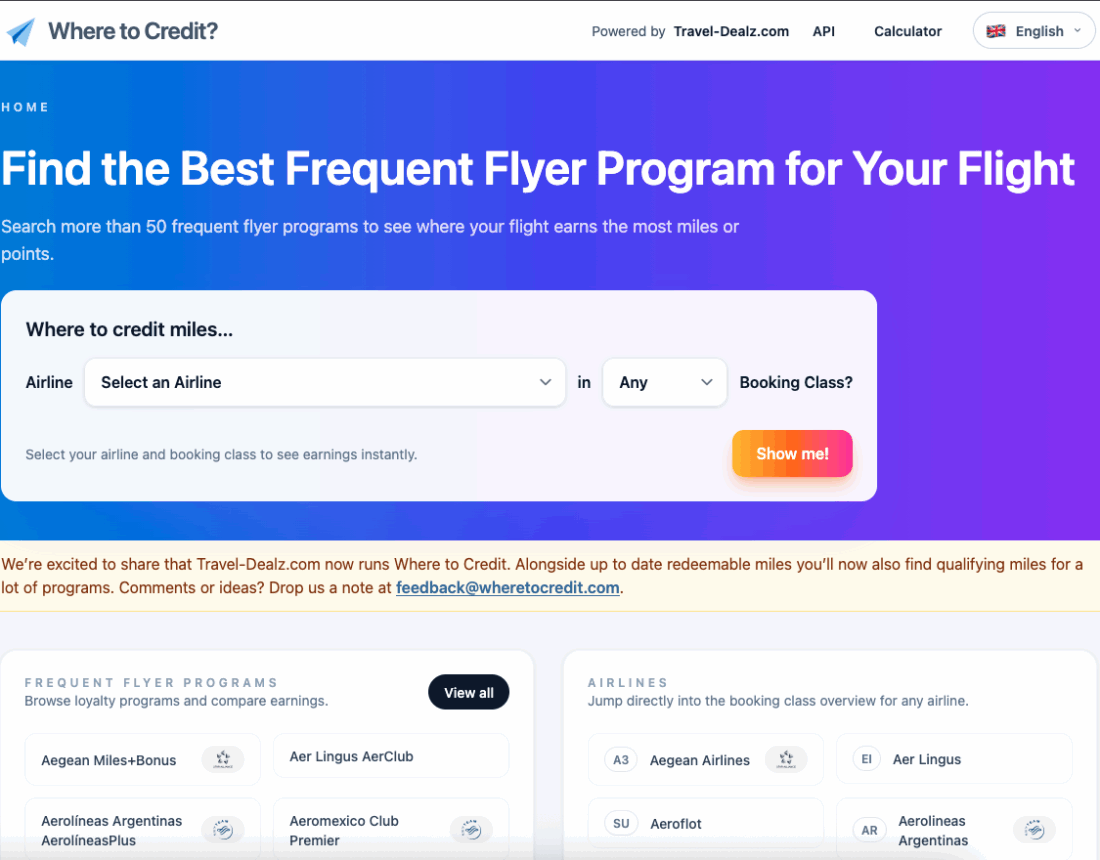 Almost 10 years ago, we introduced you to Where to Credit, a website for comparing mileage credits across different frequent flyer programs. Back then, we had already helped translate the site into German, and for many years, we relied heavily on Where to Credit to show you the mileage-earning opportunities for our flight deals.